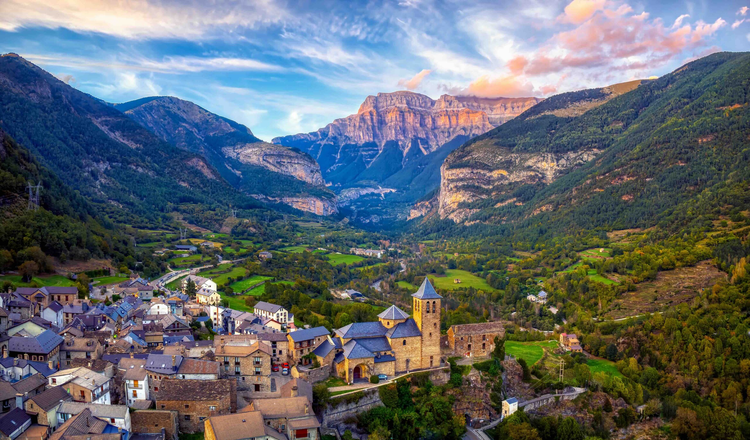 - Aínsa (Huesca): Pueblo medieval perfecto con vistas a los Pirineos. Puerta de entrada a Ordesa.